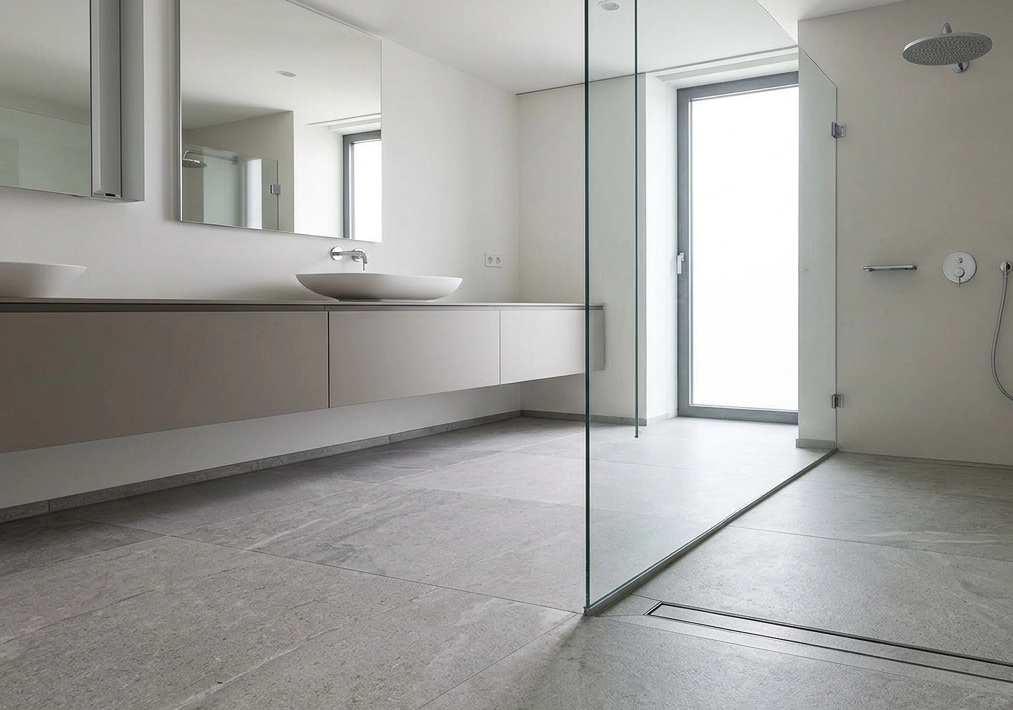 Sleek & Barrier-Free Design Eliminate visual clutter with custom frameless glass and zero-threshold entries for a modern, high-end aesthetic.